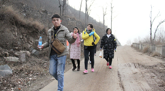 隨后,進入了團隊風(fēng)采展示,6個小隊逐一進行,冬天的嚴寒仿佛被大家整齊響亮的口號所融化,聲音響徹整個山頂!