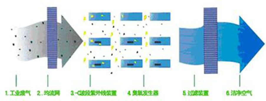 UV光氧凈化器設(shè)備中對有機揮發(fā)性廢氣首要進行光解與催化氧化。光解首要是通過高能UV紫外線對空氣中的氧氣發(fā)生分解作用,推進氧分子分化變成游離態(tài)的氧,因為游離態(tài)氧上的正負電子處于不平衡狀態(tài),因而游離態(tài)氧極易與氧分子聯(lián)系生成臭氧,而臭氧的強氧化作用可以推進有機揮發(fā)性廢氣的分化。在UV高效設(shè)備內(nèi)安裝著紫外線放電管,紫外線放電管發(fā)作的光子能量可以高達647KJ/mol、742KJ/mol,如此高的光子能可以迅速裂解小于該能量的有機揮發(fā)性廢氣的分子鍵,使其轉(zhuǎn)變?yōu)闊o機小分子物質(zhì)。